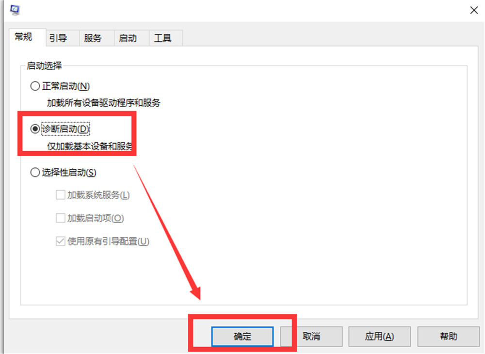 黑屏的时候只有鼠标,我们可以尝试一下键盘上“Ctrl+Alt+DEL”组合键,调出任务管理器,点击“文件”,运行新程序,输入“msconfig”命令并回车确定弹出系统配置界面,在常规的选项卡中,我们点选“诊断启动”,并点击确定,因为大多数的黑屏基本是Windows中某个服务导致的这个问题,重启电脑就可以解决黑屏只有鼠标指针的问题了。